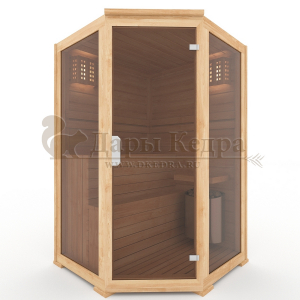 Двухместная угловая финская сауна кабина из кедра с электрокаменкой
