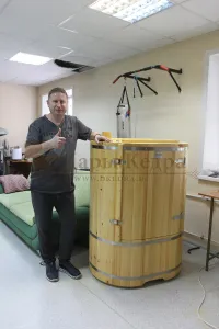Ко дню рождения супруги решил заказать фитобочку в подарок. Менеджер Виктория мне все подробно рассказала по изделию и доставке. В итоге выбрал профессиональную овальную фитобочку, приехала она за день до дня рождения. Радости жены не было предела))) Теперь парится и очень довольна, говорит не хуже бани. Мне тоже нравится, спасибо, рекомендую.