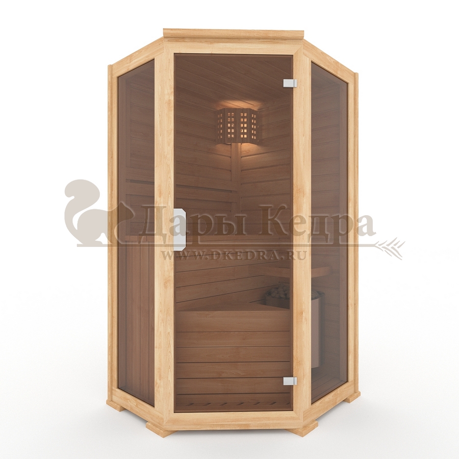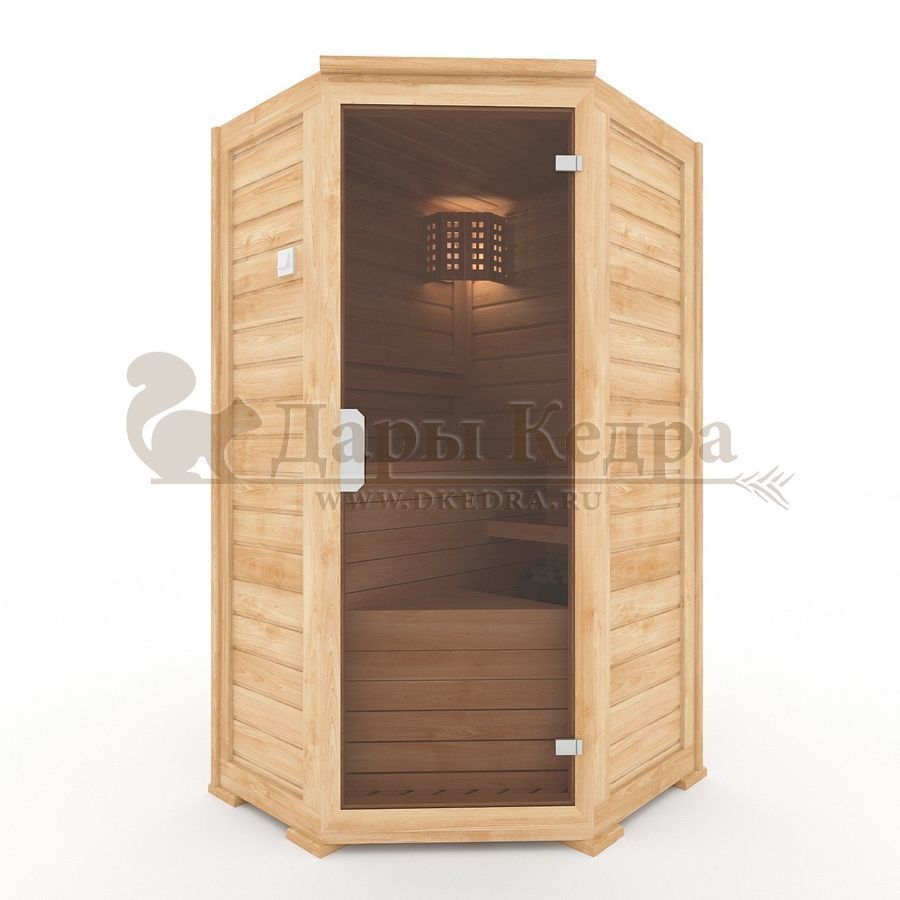 Одноместная угловая финская «Элит» сауна кабина из кедра и липы с электрокаменкой