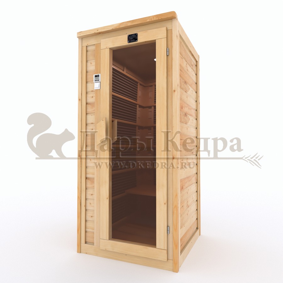 • Одноместная финская сауна кабина из кедра с электрокаменкой Это специально оборудованная готовая деревянная кабина для сухого и влажного парения. Электропечь нагревает пространство внутри и позволяет сбрызгивать камни водой, слегка увлажняя воздух. Такая процедура позволяет избежать перегрева. Сауна обшита снаружи и внутри кедровой вагонкой и имеет теплоизоляционный слой. Финская сауна с электропечью подойдет, как для домашнего использования, так и для коммерции. Доставляется в разборном виде щитами, собирается по инструкции с помощью шуруповёрта. Обращаем Ваше внимание, что в стоимость сауны уже включена дверь с закаленным стеклом в раме из кедра с фиксатором и деревянным фасадом справа. Вы можете заменить фасад на цельностеклянный с безрамной дверью за дополнительную плату. Нагреваясь, древесина кедра выделяет полезные вещества-фитонциды, которые благотворно влияют на организм в целом и укрепляют иммунитет.