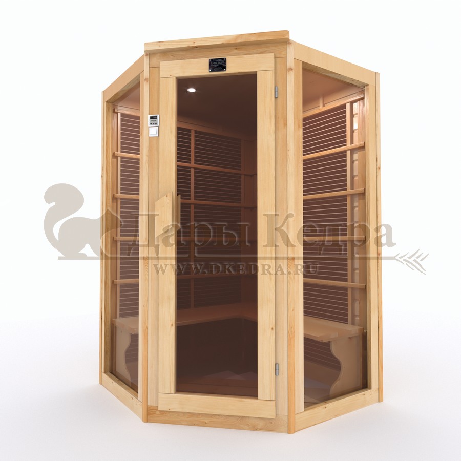 • Четырёхместная угловая инфракрасная сауна кабина из кедра с карбоновыми излучателями Это специально оборудованная кедровая кабина для прогрева тела человека сухим теплом. Воздух в таких парных не нагревается. Инфракрасные лучи воздействуют на тело, равномерно прогревая мышцы, суставы и органы. Карбоновые излучатели, встроенные в стены кабины, обладают мягким прогревом, что полностью исключает возможность ожога. Работает кабина за счет электричества. Установка сауны в угол, позволяет рационально использовать пространство помещения. Подходит как для домашнего использования, так и для коммерции. Обращаем Ваше внимание что в стандартную комплектацию входит трапик для ног, но вы можете его заменить на цельный пол совершенно бесплатно! Целебная древесина кедра и инфракрасные лучи благотворно влияют на организм человека в целом. При регулярном использовании инфракрасной сауны укрепляется иммунитет, улучшается кровообращение и состояние кожи, выводятся токсины.