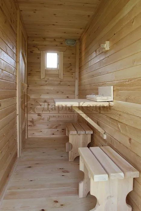 Более привычная форма универсального строения - это прямоугольная. Здесь в каждой комнате стандартные углы, без каких-либо обтекаемых форм. Тем не менее такая конструкция тоже пользуется спросом у покупателей. Здесь можно привычно организовать две комнаты для отдыха и мытья, а одну оставить в качестве сауны. Поставив в комнате отдыха диванчик, кресло, дополнив откидным или стационарным столиком, можно создать за вполне приемлемые средства очень стильное эко-пространство для проживания летом до поздней осени. В таком доме печь в парной служит для прогрева смежных комнат при открытых дверях. Такую банную конструкцию можно дополнить увеличенной верандой. На ней свободно разместятся лежаки, садовая мебель и другие предметы интерьера по желанию собственника.