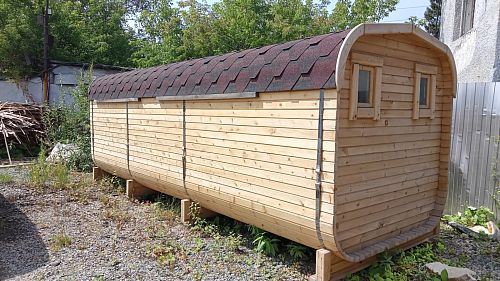 Хорошая вместительная баня. Очень красивая получилась, аккуратная. Быстро нагревается, мы довольны, спасибо.
